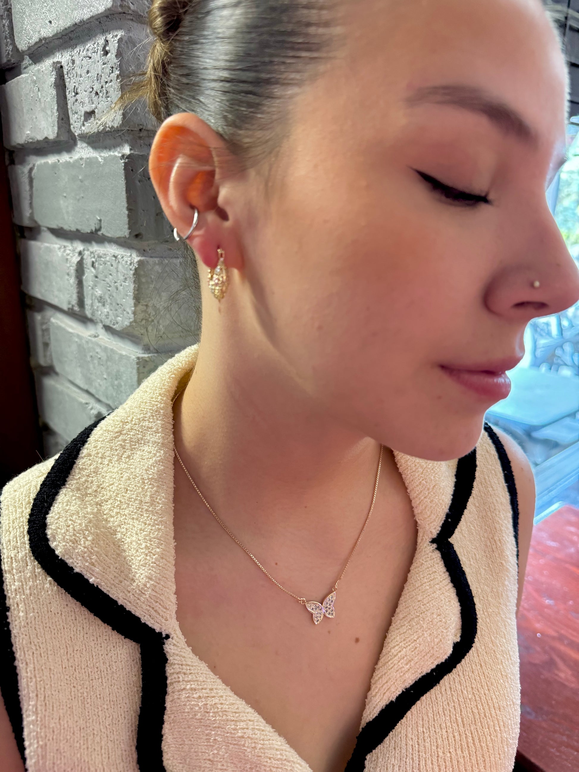 Beautiful Butterfly Necklace has the perfect sparkle to it, dainty and sweet.